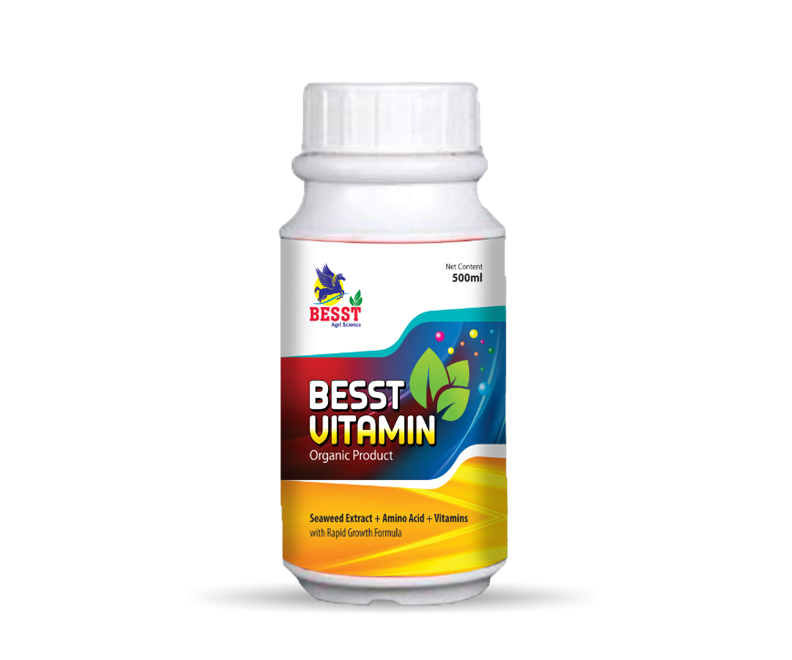 Besst Vitamin includes diverse formulations of compounds & substances that are applied to plants or soils to improve crop vigour, yields, quality & tolerance of abiotic stress. Besst Vitamin foster plant growth and development throghout the crop life cycle from seed germination to plant maturity in a number of demonstrated ways, including but not limited to improving the efficiency of the plant's metabolism to induce yield increases & enhanced crop quality. Increasing plant tolerance to and recovery from abiotic stresses. Facilitating nutrient assimilation, translocation & use. Enhancing quality attributes of produce, including sugar content, color, fruit seeding etc.,