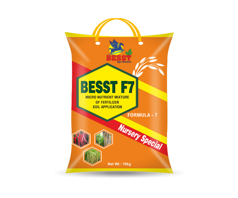 Besst-F7 Formula 7 is a micronutrient mixture of Iron, Manganese and Zinc as carrier. This micro nutrient mixture helps in root development and increase and availability in phosphorus and calcium. This plays important role in photosynthesis and chlorophyl development, also act as catalyst in various plant metabolic process.