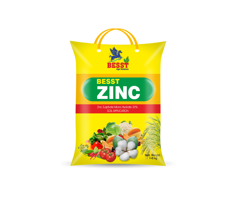 Zinc Sulphate Mono hydrate containing 33% Zinc is efficient for correcting zinc deficiency, either through Soil or Foliar Application. Besst Zinc 33% contains in zinc Sulphate monohydrate form. It contains 33% Zinc. Mono Zinc 33% is in powder form. It is readily soluble in water. It is immediately and completely available to crops. by spraying Mono Zinc 33%, Zinc deficiency can be totally controlled. If crop is more deficient, then monohydrate Zinc 33% can be repeated at 7-10 days.